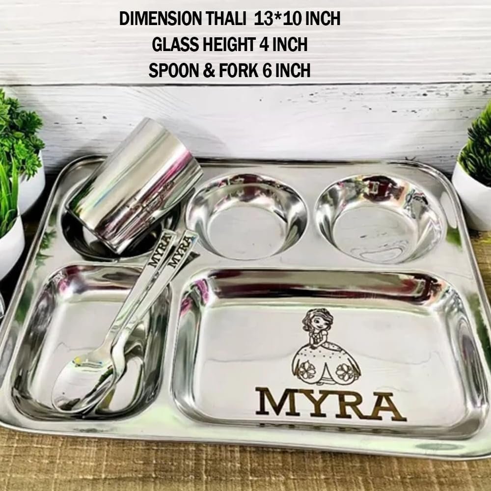 - 🍴 Complete Set: 5‑partition thali, spoon, fork, and glass included