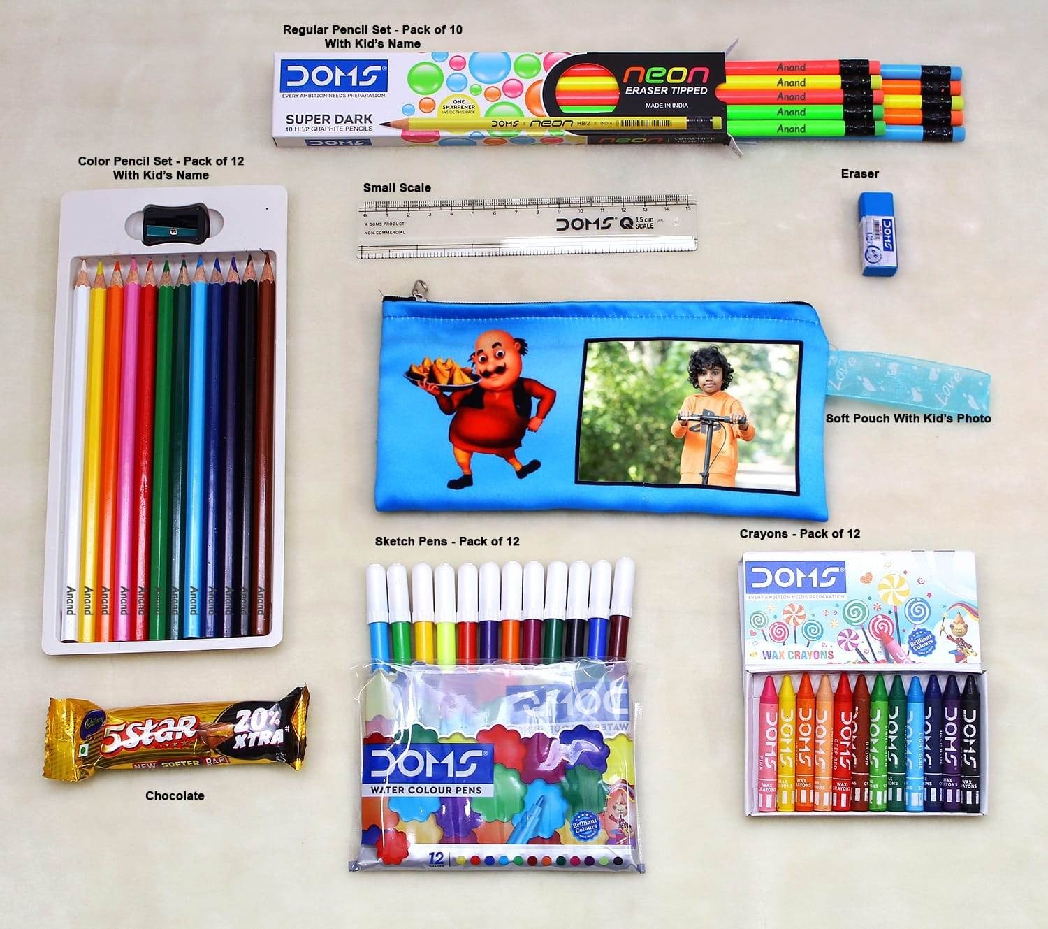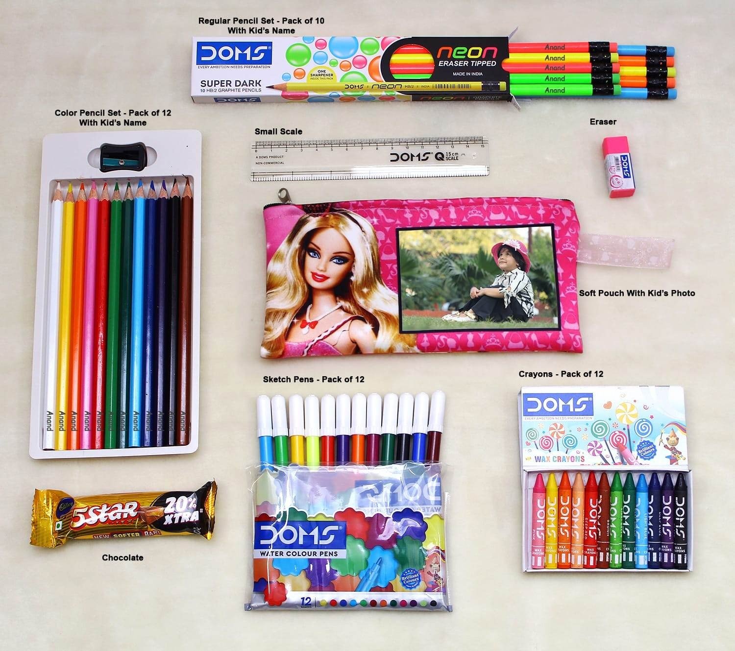 With its mix of stationery essentials, personalization, and a chocolate treat, the Personalized DOMS Pencil Box Hamper is the ultimate school companion for kids who love to learn and create.