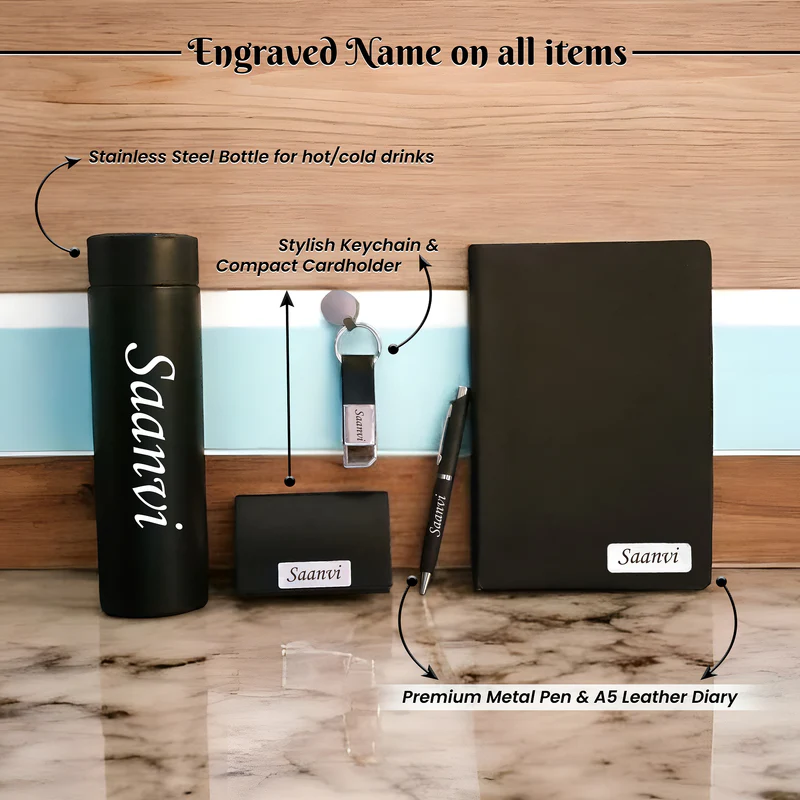 • Engraved Metal Pen – Sleek, smooth writing experience.