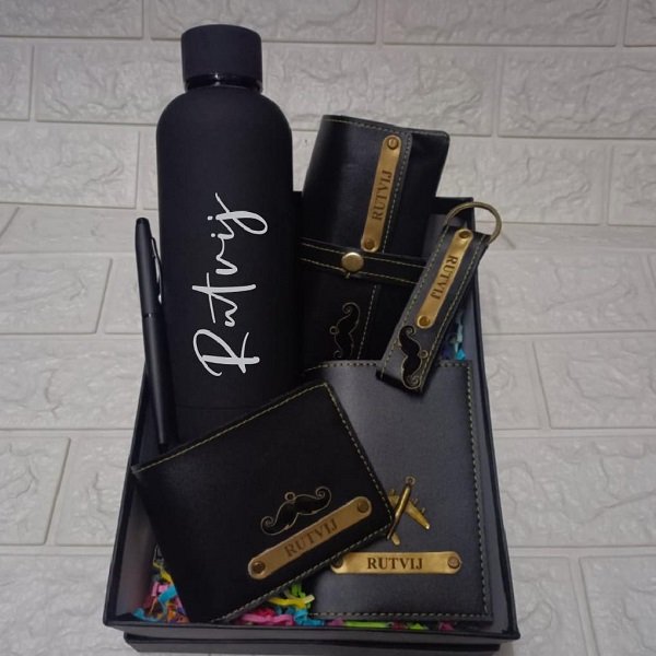 Matt Finish Bottle: Available in an array of sophisticated colors including pink, blue, black, and baby pink, this Personalized Men’s Gifting Combo combines style with functionality, ensuring you stay hydrated in style wherever you go.