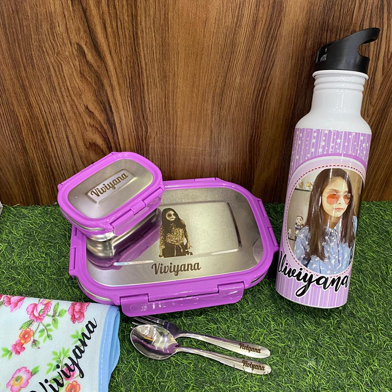 Crafted for both style and practicality, the lunch box is spacious enough for balanced meals, while the bottle’s sleek design makes it ideal for school, office, gym, or travel. Personalization ensures your set stands out, making it a wonderful gift for students, professionals, or loved ones.