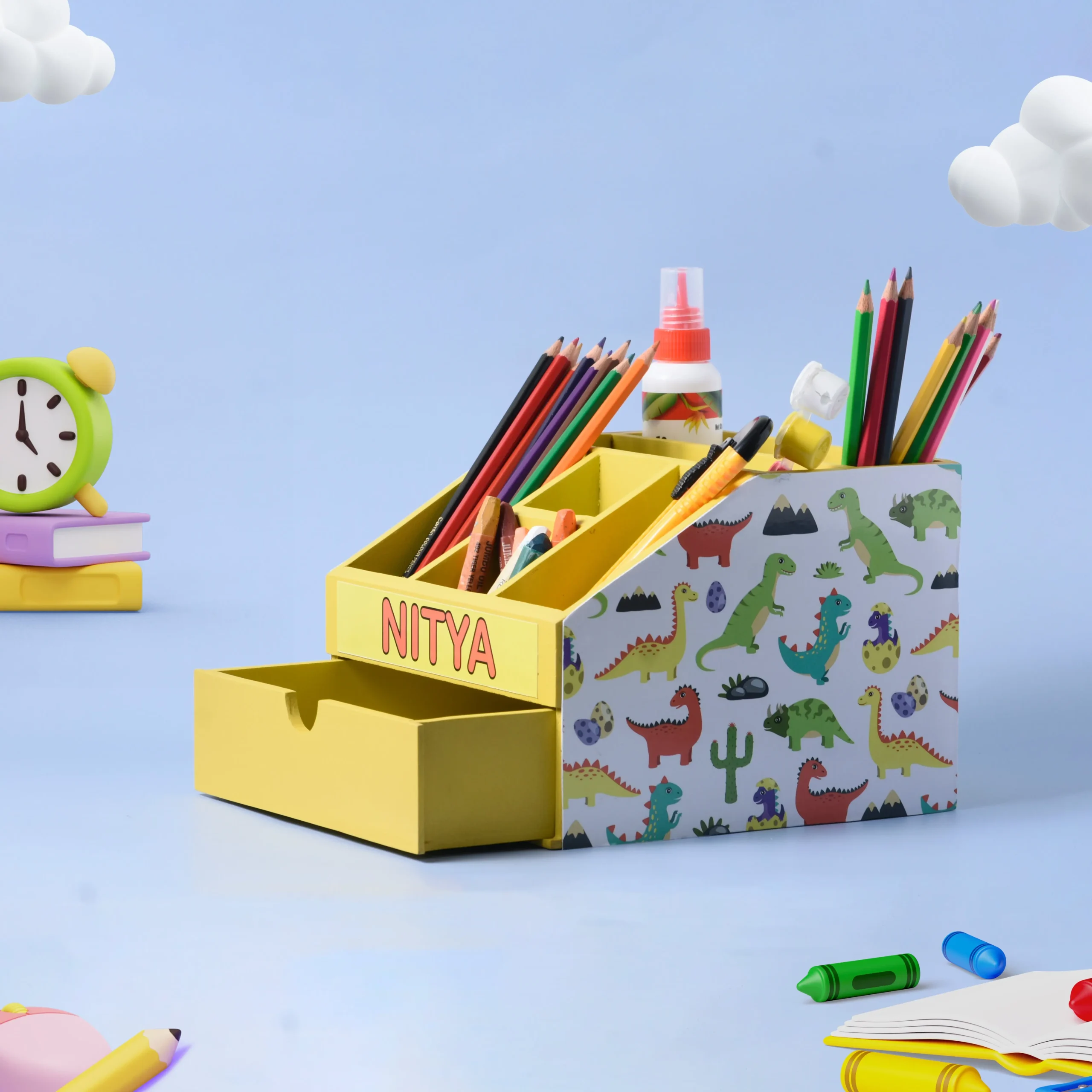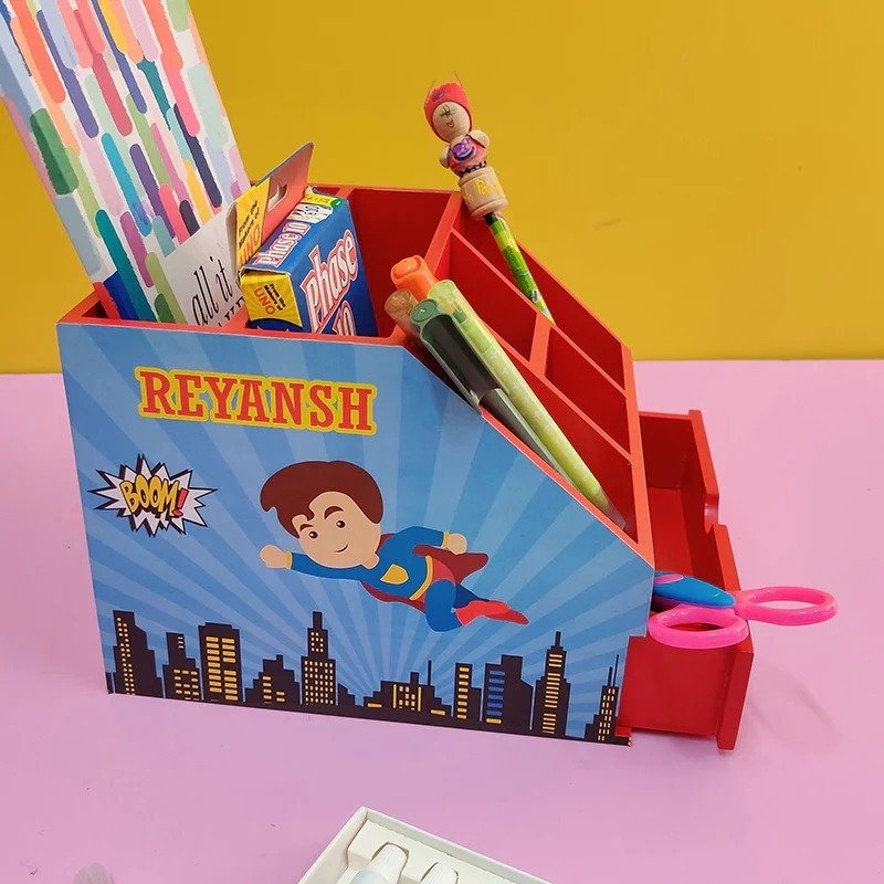 Whether for personal use or gifting, the Personalized Wooden Stationery Stand with Drawer is the ultimate desk accessory that combines practicality with personalization.